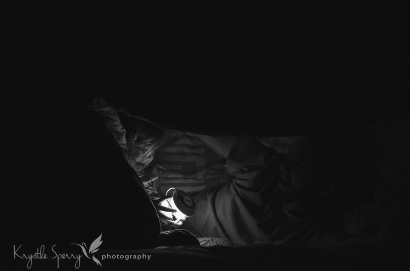 These two…they’re just so adorable together. I can’t wait for Peanut to be older and able to play and be crazy with the rest of us. B loves to play in the “cave” (a.k.a. under the covers:). Wednesday Low Light shot:)