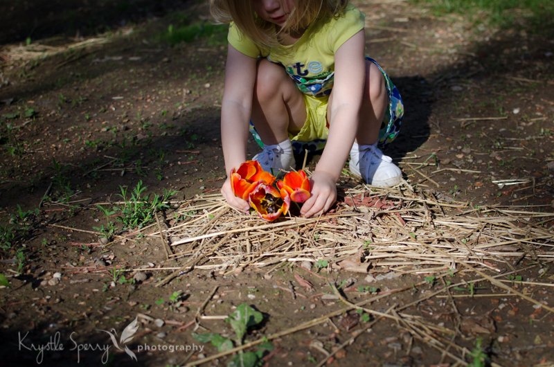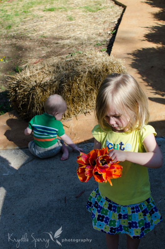 If you look behind her, you can see the empty stems of the tulips where she picked all of these…. (still trying not to cry)