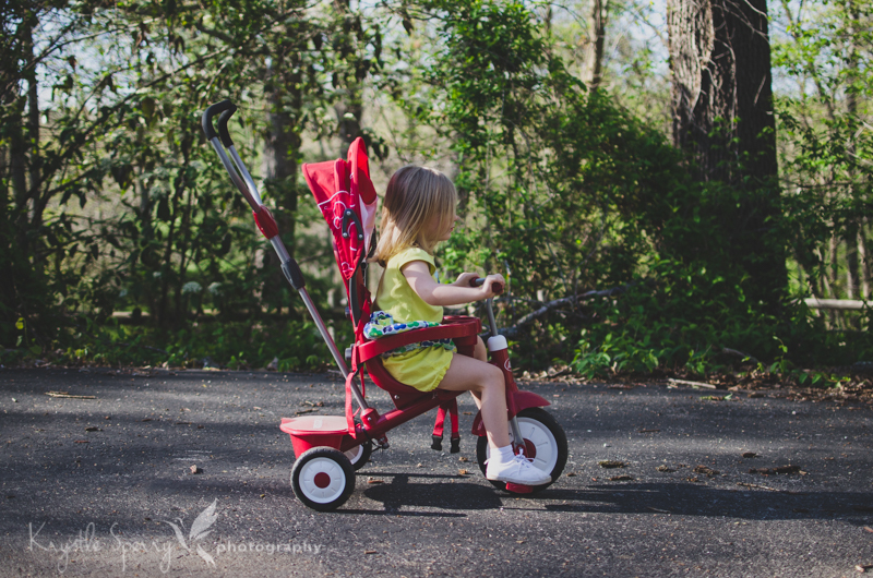 Side note: She can pedal her tricycle like a big girl! I removed all the crazy stuff attached to it after this. Now it’s just a boring tricycle:)