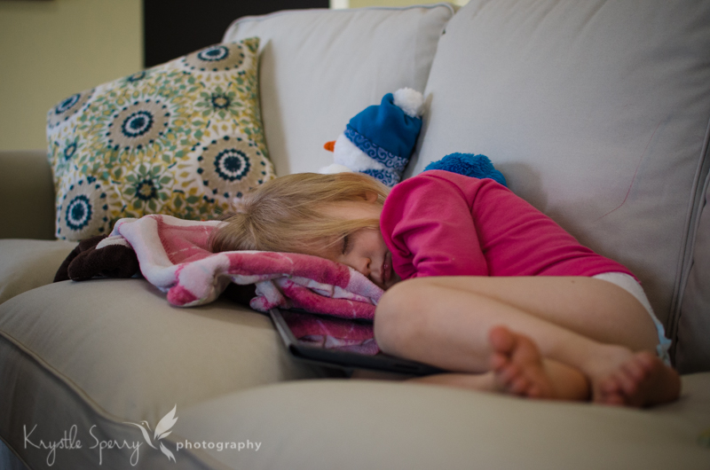 Monday: My little nap fighter fell asleep on the couch watching Backyardigans:) I take as many photos like this as I can…I know these days are numbered.